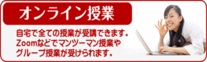 東京校の全てのグループ授業、マンツーマン授業をオンラインで受講することができます。